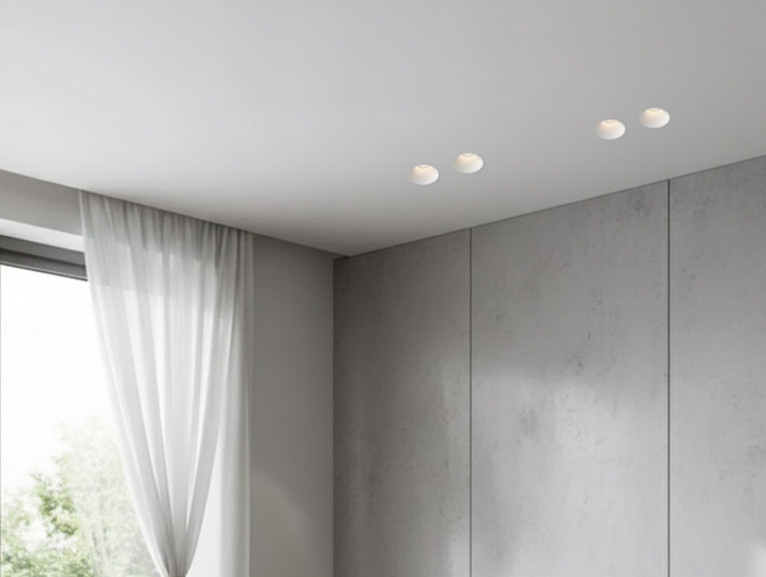 다운라이트를 천장에 매입하면 조명 테두리가 천장면 위로 살짝 올라오게 됩니다. 저가 제품은 이 테두리가 1.5~2cm로 두꺼운 반면, 고급 제품은 1cm 이하로 슬림하게 제작됩니다. 가장 상위 등급은 트림리스(Trimless) 방식으로, 테두리 자체가 없어 천장과 조명이 한 면처럼 보입니다. 호텔, 고급 주거, 갤러리에서 주로 사용하는 방식이며, 국내에서도 점점 수요가 늘고 있습니다.