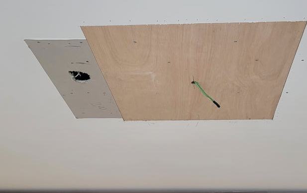 콘크리트 앙카 방식은 석고보드 안쪽의 콘크리트 구조물에 앙카볼트를 박아 고정하는 방법입니다. 이미 도배가 완료된 상태에서도 시공이 가능하다는 장점이 있지만, 작업 시 소음이 발생합니다. 석고보드와 콘크리트 사이 간격이 20cm 이상이거나 최상층이면 목공 방식이 더 적합합니다. 이 방식은 인테리어를 하지 않고 기존에 거주하는 상태에서 실링팬을 달고 싶을때 적용하는 방식입니다. 인테리어를 해야 한다면 굳이 앙카 방식을 하지 말고 실링팬 설치 부위에 합판보강하는 방식을 선택하세요.
